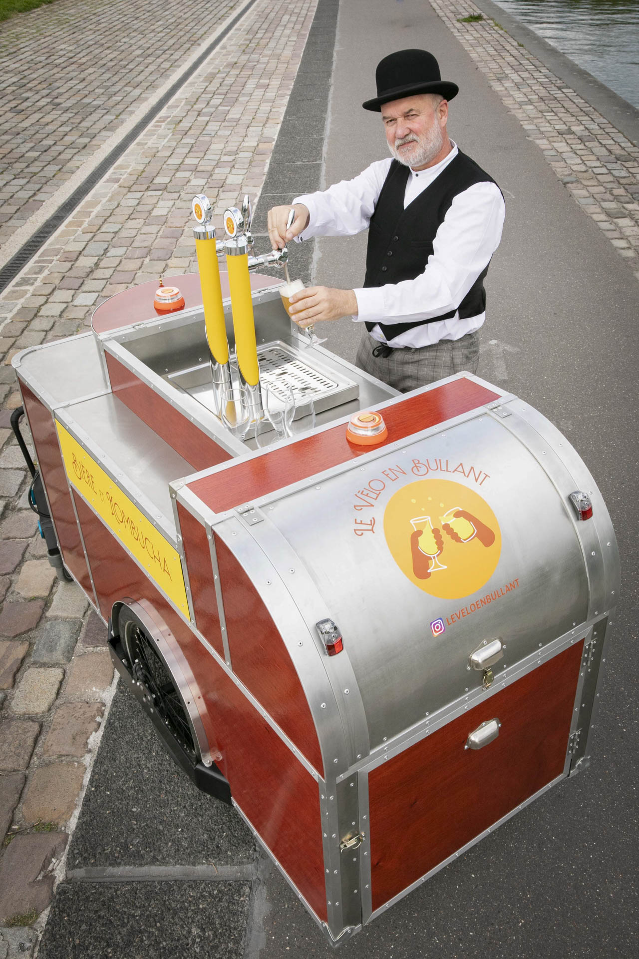 Philippe Fourcade fondateur du « Vélo en Bullant » propose un service traiteur de boissons à bulles en tirage pression